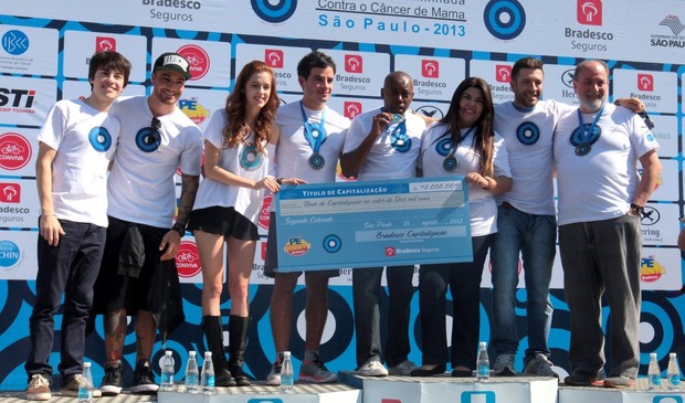 Mais um belo evento patrocinado pela Bradesco Seguros, com um todo especial do presidente da Bradesco Capitalização, Nonton Glabes Labes. Na manhã deste domingo (25), diversos famosos se reuniram no Parque do Ibirapuera, na capital paulista, para uma corrida contra o câncer de mama. Atores e atrizes da novela global Amor à Vida marcaram presença, entre eles, Fernanda Machado, Fabiana Karla, Felipe Titto, Thalles Cabral e Anderson de Rizzo. Além disso, também passaram por lá Julianne Trevisol, Íris Stefanelli, a piloto Bia Figueiredo e a top Renata Kuerten. O evento chama a atenção da importância da prevenção, com o objetivo de evitar novos casos da doença.