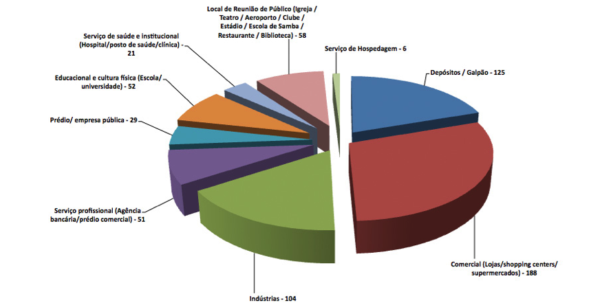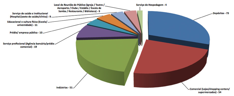 Ocorrências de incêndios estruturais (exceto residenciais) noticiados no primeiro semestre de 2013 – por ocupação