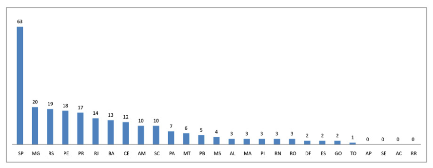 Como se pode perceber, a quantidade de ocorrências encontradas em São Paulo segue consideravelmente maior do que nas demais unidades federativas, assim como ocorreu no ano anterior. No entanto, deve-se destacar que essa diferença pode ser explicada pela forma como a imprensa de cada estado cobre especificamente este assunto.
