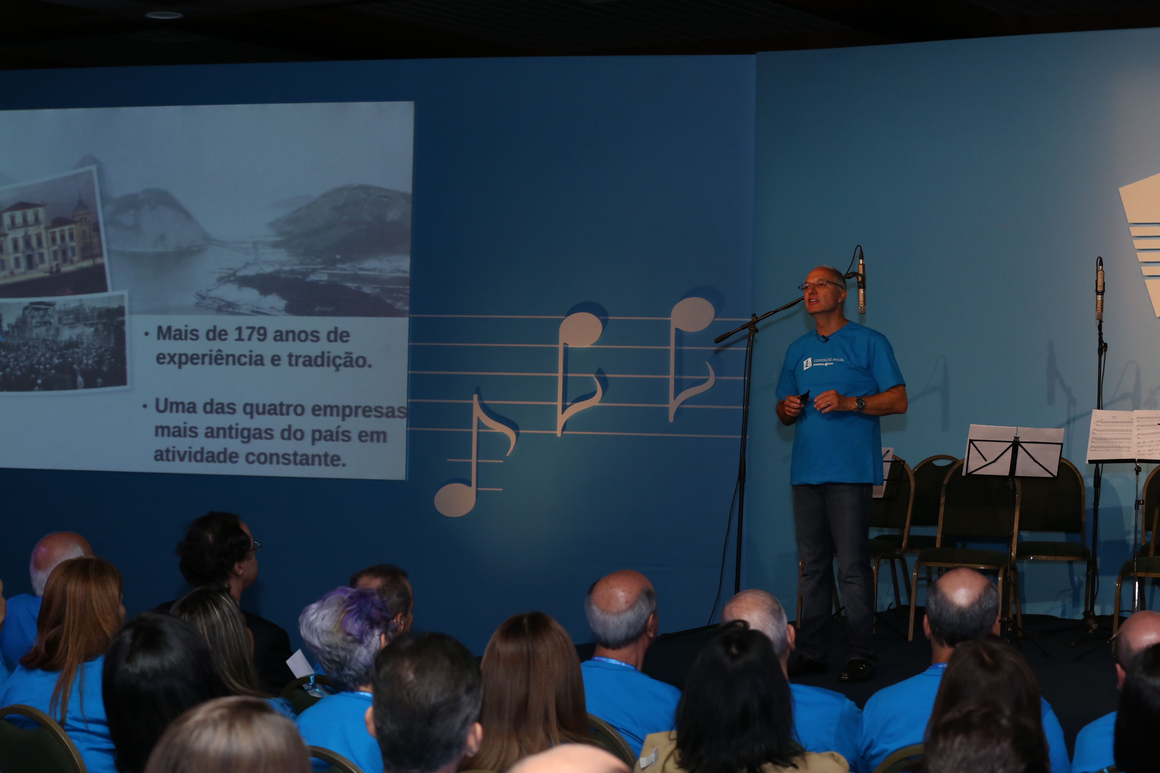 “Não é fácil subir neste palco e olhar o conjunto que temos. Sou muito emotivo”, diz, tentando em vão segurar as lágrimas ao olhar sua equipe vestida de camiseta azul. “É uma satisfação grande poder verificar o crescimento desta companhia”, segue. “Essa empresa só é o que é em função das pessoas que compõem o grupo. Em empresas de serviços como a nossa as pessoas são o ativo mais valioso. Máquinas e prédios não importam. O que importa são as pessoas agregadas em um único propósito”.