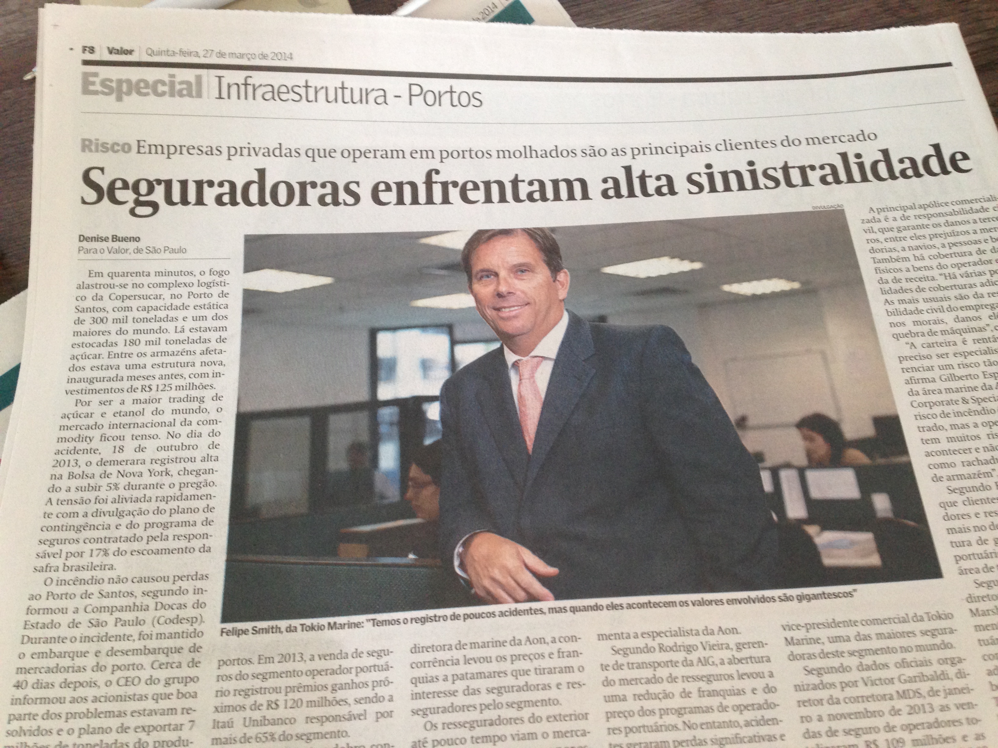 “A carteira é rentável, mas é preciso ser especialista para gerenciar um risco tão complexo”, afirma Gilberto Espindola, líder da área marine da Allianz Global Corporate & Specialty (AGCS). “O risco de incêndio é bem administrado, mas a operação portuária tem muitos riscos que podem acontecer e não são gerenciados, como rachaduras num telhado de armazém”, exemplifica.