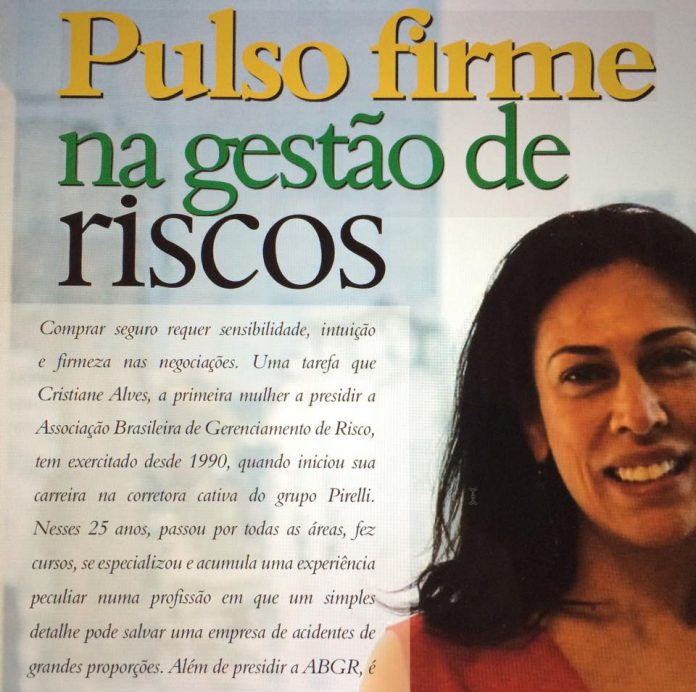 Comprar seguro requer sensibilidade, intuição e firmeza nas negociações. Uma tarefa que Cristiane Alves, a primeira mulher a presidir a Associação Brasileira de Gerenciamento de Risco, tem exercitado desde 1990, quando iniciou sua carreira na corretora cativa do grupo Pirelli. Nesses 25 anos, passou por todas as áreas, fez cursos, se especializou e acumula uma experiência peculiar numa profissão em que um simples detalhe pode salvar uma empresa de acidentes de grandes proporções. Além de presidir a ABGR, é a gerente de seguros da CSN, uma das maiores siderúrgicas da América Latina e o segundo maior exportador de minério de ferro do Brasil. Veja a seguir os principais trechos da entrevista concedida para a Revista Gerência de Riscos.