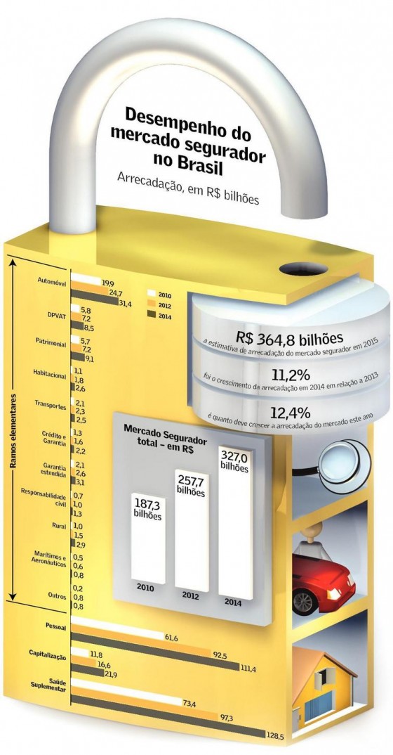 O Valor traz um especial sobre seguros, que dá uma dimensão ao leitor da importância da indústria de seguros mundial e o grande potencial do Brasil, visto como um dos mercados mais atraentes do mundo. O mercado segurador brasileiro deve fechar 2015 com um crescimento de 12% nominais, completando, assim, seis anos consecutivos de expansão de dois dígitos. O resultado foi a conquista de um marco histórico: em junho, pela primeira vez, os ativos das seguradoras ultrapassaram os dos fundos de pensão.