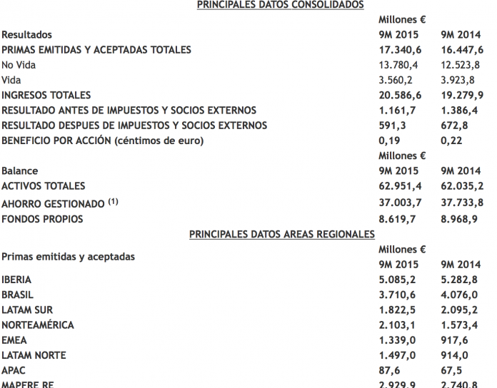 Na América Latina, a Mapfre contabilizou prêmios de 7 bilhões de euros nos nove primeiros meses de 2015, 0,8% a menos que no mesmo período do ano anterior, em razão da desvalorização de quase todas as moedas da região. O lucro antes dos impostos cresceu 9,2%, atingindo 785 milhões de euros. A América Latina já é responsável pelo aporte de 38% dos prêmios e 29% dos lucros antes de impostos da MAPFRE no mundo.