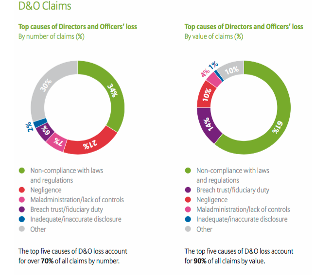 O seguro D&O tornou-se parte regular da gestão de riscos das empresas nos últimos 20 anos. Ele disponibiliza uma proteção financeira aos gestores contra as consequências de “atos ilícitos” reais ou alegados. Os cenários de riscos D&O comuns incluem questões de RH, ações por parte de acionistas, erros de relatórios ou de divulgação. A cobertura não inclui atos fraudulentos, criminais ou intencionais que não respeitam as regras de compliance, ou casos em que os diretores obtiveram remuneração ilegal ou agiram visando ao lucro pessoal.