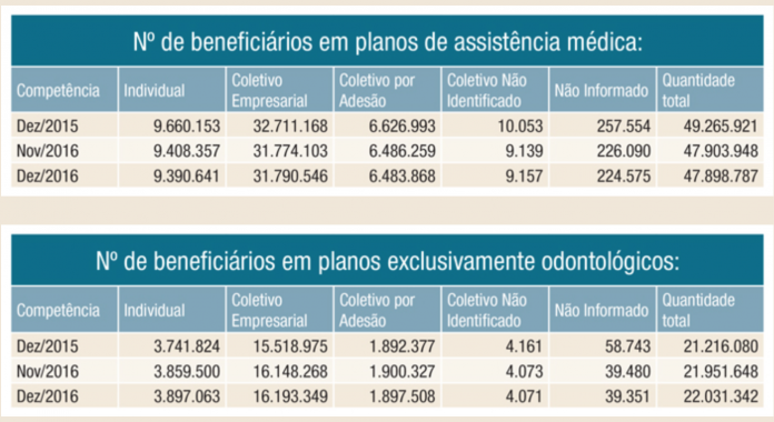Em dezembro, o setor registrou 47.898.787 beneficiários em planos médico-hospitalares e 22.031.342 em planos exclusivamente odontológicos. A comparação com o mês de novembro mostra que o número de consumidores em planos de assistência médica manteve-se estável – cerca de cinco mil beneficiários a menos que o mês anterior. Já os planos exclusivamente odontológicos seguiram a tendência de crescimento, com 79,7 mil beneficiários a mais que no mês anterior.
