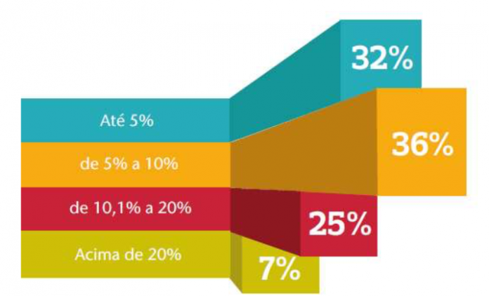 Para 32% das companhias que participaram do levantamento, o custo de saúde é menos impactante e equivale a até 5% da folha. Só que para 25%, os custos de assistência médica são de 10,1% a 20% do total gasto com os colaboradores. As 7% restantes têm custos superiores a 20%.