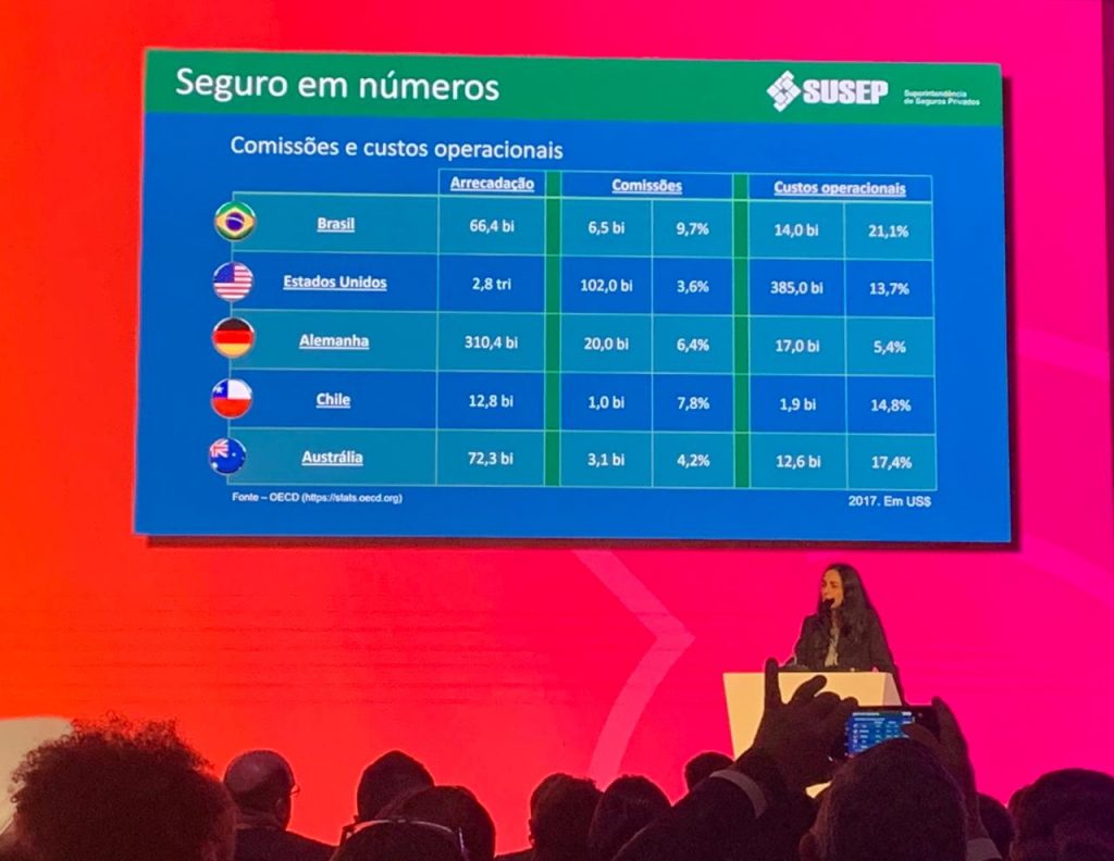 Ainda buscando entender o funcionamento do mercado segurador do Brasil, comparando-o com o do resto do mundo, Solange disse ter duas certezas: há muito potencial para o setor crescer e é preciso trabalhar melhor a educação da população sobre risco. No tema concorrência, a Susep tem buscado incentivar as seguradoras a elevar a qualidade dos serviços prestados e a redução dos preços praticados. Ela apresentou um estudo comparando o Brasil com outros países em relação às taxas de administração e de corretagem. “Estamos muito acima do que vemos no mundo e precisamos melhorar esses dois indicadores”.