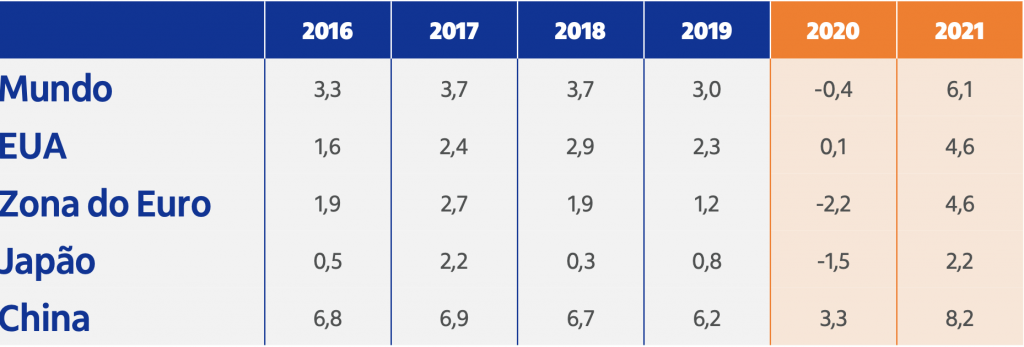 PIB mundial – O Itaú reduziu a previsão para o PIB mundial de 2,7% para menos 0,4%m configurando uma recessão global.