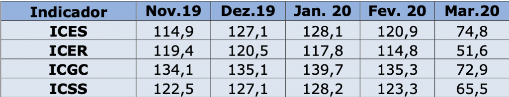 Em março de 2020, o segmento passou a ficar pessimista sobre o que pode acontecer nos próximos seis meses. Ou seja, indicadores abaixo de 100 pontos. A última vez que o índice cruzou esse limite foi em setembro de 2018.