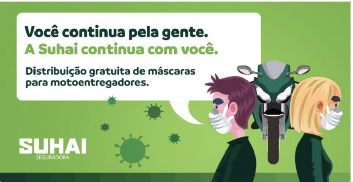 A seguradora Suhai distribuiu 7 mil máscaras reutilizáveis em tecido para motoboys de São Paulo. A distribuição começou dia 24 e via até 28 de abril ou até durarem os estoques no Shopping Parque da Cidade e na sede da seguradora. Para garantir que não haja aglomeração, a entrega será realizada em formato drive thru.
