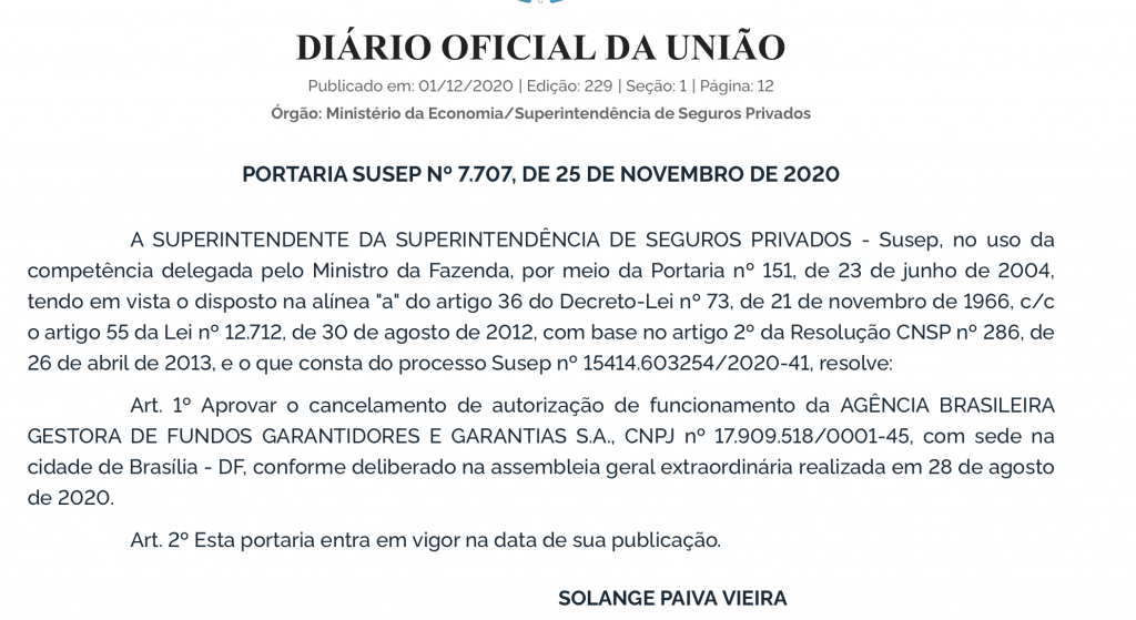 A Superintendência de Seguros Privados (Susep) aprovou o cancelamento de autorização de funcionamento da Agência Brasileira Gestora de Fundos Garantidores e Garantia, conhecida pela sigla ABGF, em novembro. Criada em 2013, ela nunca foi efetivamente usada por falta de capital em montante adequado. É de sua responsabilidade a administração do Fundo Garantidor de Infraestrutura (FGIE), que deveria servir como garantia de obrigações financeiras do poder público em PPPs e para cobrir riscos (inclusive não gerenciáveis) em concessões, na tentativa de remediar a insegurança dos investidores privados.