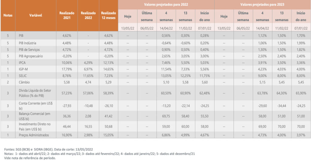 Os resultados de atividades melhores que o esperado, a despeito da inflação mais alta, afirma Simões, podem ser consequência de medidas pontuais como liberação do FGTS e a antecipação do 13º dos aposentados, além de uma melhora mais consistente do mercado de trabalho. Com isso, houve revisões para cima nas projeções para o crescimento do PIB de 2022 nas últimas semanas. O IPCA registrou alta de 1,06% em abril, acima do consenso de mercado (1,00%). “Em doze meses, o índice avançou de 11,30% para 12,13%, e seu detalhamento evidencia um quadro inflacionário ainda adverso, com pressões relevantes em serviços e bens industriais, núcleos rodando em alta e difusão bastante elevada, o que levou a algumas revisões de alta nas projeções para o IPCA neste e no próximo ano”, cita.