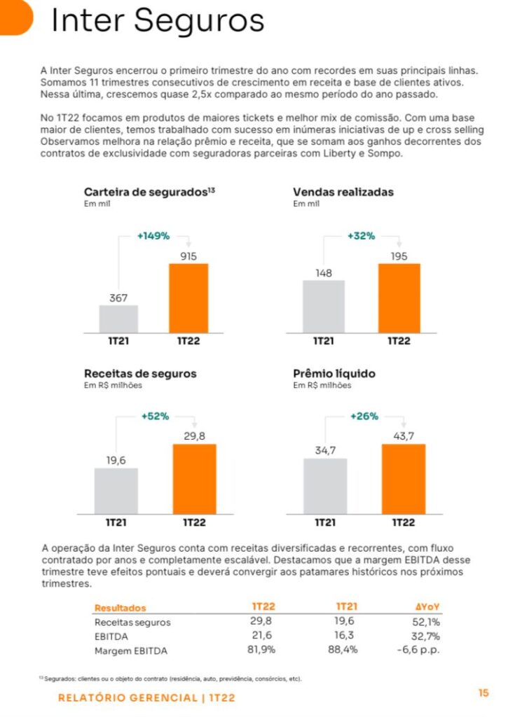 A Inter Seguros encerrou o primeiro trimestre com receitas de R$ 29,8 milhões, alta de 52% em relação ao mesmo período do ano passado. Paulo Padilha, CEO da companhia, comemorou os resultados em sua página no LinkedIn. “Em junho de 2019, passamos orgulhosamente a fazer parte do Inter. Foram 11 trimestres consecutivos de crescimento. Saímos de 30 mil para quase 1 milhão de clientes ativos. As vendas mensais saltaram mais de 40 vezes. A receita mais de 10 vezes e com fluxo contratado por anos. Tudo isso sem intermediários, sem uma PA de vendas. 100% digital. Somos a operação de maior margem desse mercado. O maior portfólio digital de seguros do ocidente. Execução, escala, recorrência… e muito trabalho. Sem mágica. Estamos apenas começando. Seguiremos com disciplina”, comentou em seu post.