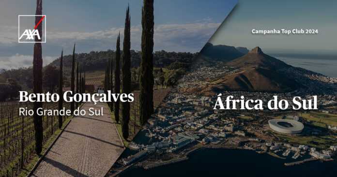 A AXA no Brasil anuncia a todos os corretores parceiros o programa completo com os destinos de viagens da nova edição da campanha Top Club 2024. Para este ano, a companhia escolheu as belas paisagens nacionais de Bento Gonçalves, no Rio Grande do Sul, e para o destino internacional, a África do Sul.