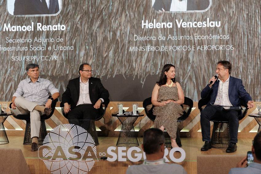 André Dabus, diretor de Infraestrutura e Construção da Marsh Brasil; Antonio Silveira, vice-presidente de Setor Privado da CAF; Denis Maelaro, diretor técnico de P&C, Specialties e Engenharia de Riscos da AXA; e Helena Venceslau, diretora de Assuntos Econômicos do Ministério de Portos e Aeroportos, discutiram caminhos para ampliar a participação do setor segurador na etapa prévia dos projetos, onde decisões cruciais sobre garantias, produtos e padrões técnicos são tomadas.