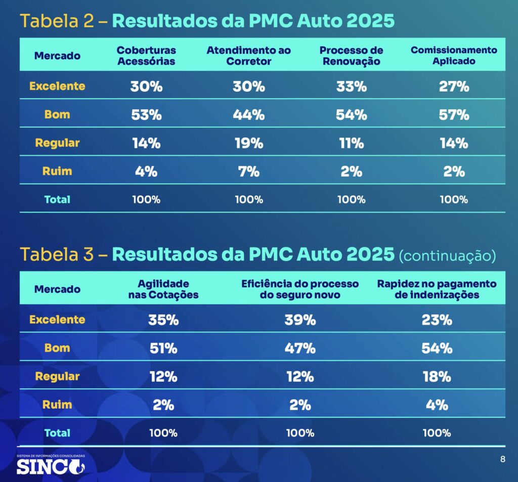 “O objetivo da PMC não é criar um ranking, mas oferecer subsídios para que as seguradoras identifiquem seus pontos fortes e fracos. O corretor é a ponta que sente o dia a dia do cliente, e trazer essa voz para a discussão é essencial para a evolução do mercado de seguros de automóvel”, afirmou Boris Ber, presidente do Sincor-SP, reforçando que a pesquisa tem caráter construtivo e busca fomentar melhorias contínuas.